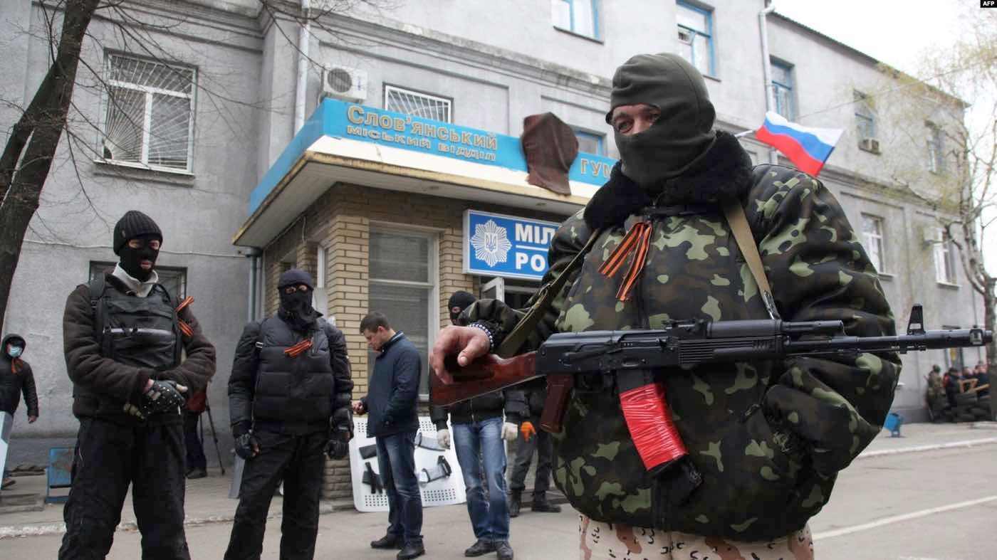 "Спусковий гачок війни натиснув", за його ж словами, Ігор Гіркін, полковник ФСБ РФ, прихильник російського імперіалізму. Гіркін вирішив радикалізувати проросійський протест. З озброєною групою росіян він перетнув кордон 12 квітня 2014 року, захопив будівлю МВС у Слов'янську, щоб заволодіти зброєю. До Гіркіна почали приєднуватися проросійськи налаштовані силовики. Коли з'явилась інформація про озброєні групи Гіркіна, Україна оголосила антитерористичну операцію.